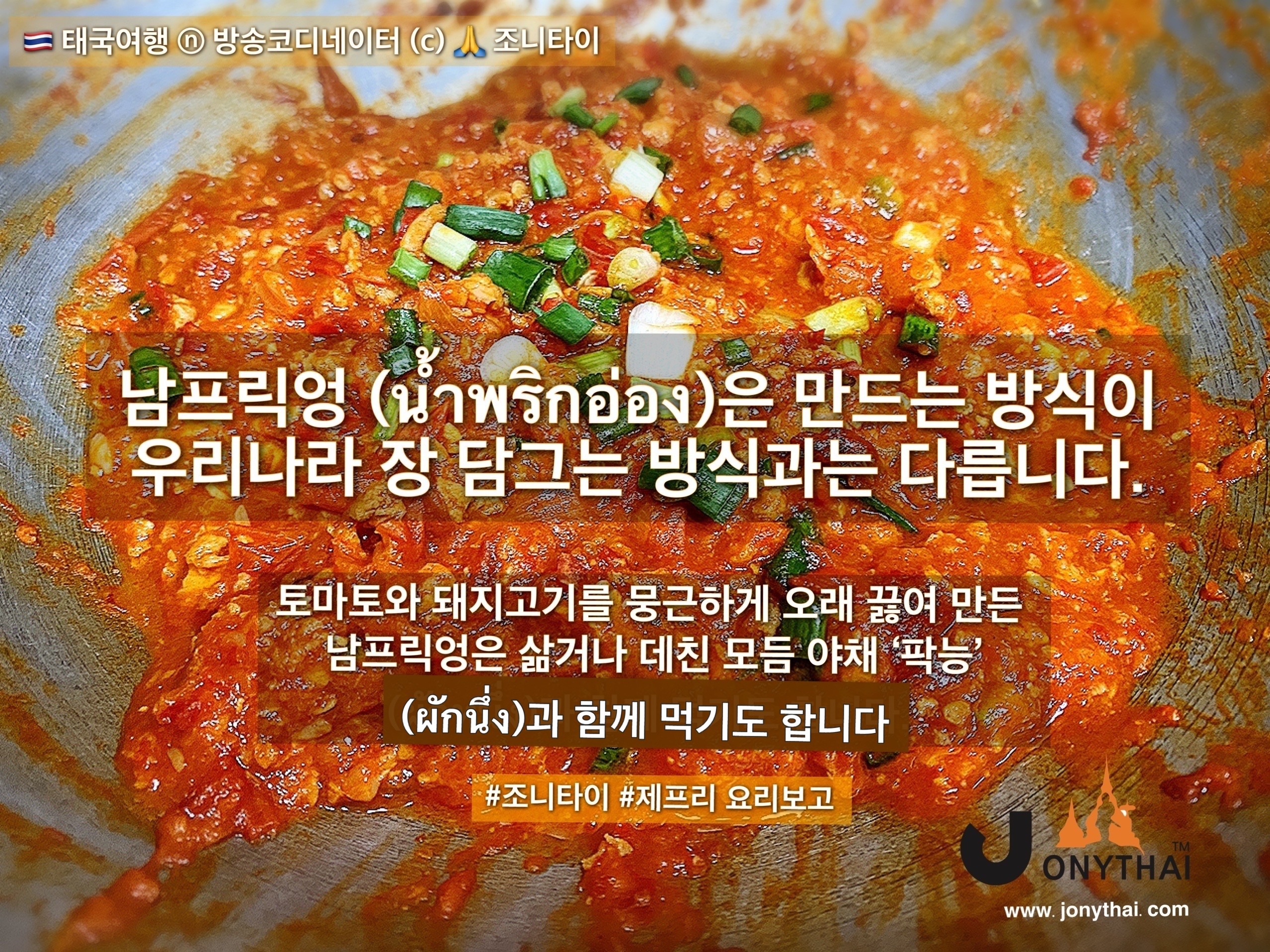 태국 북부여행에서 꼭 한번 먹어봐야 하는 남프릭엉 소스’ 태국에 어떤 음식과 먹어야 가장 잘 어울리고 맛있을까요? 지금 보시는 조니타이 블로그 게시글 하단에 댓글로 남겨주세요.