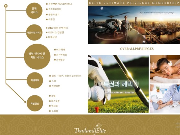 타일랜드 엘리트 비자서비스의 특징은 누구나 쉽게 누리지 못하는 다양한 혜택과 태국에서 장기체류가 가능하다는 것입니다. 최근 업그레이드된 전용요트를 비롯한 전용기 서비스 그리고 공항도착부터 특별 개인의전서비스까지 누릴수 있다는 장점이 세계 부유한 이들이 엘리트 비자 서비스를 선택하는 이유중에 하나인듯 합니다. <타일랜드 엘리트 코리아 한국 공식에이전트 조니타이에서..>