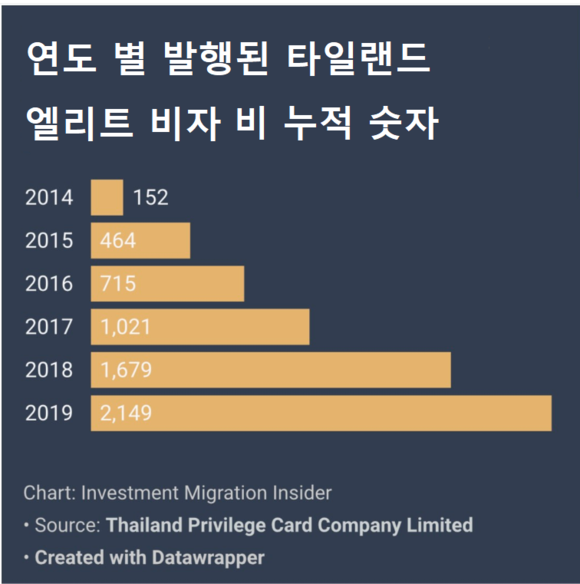 2014년 부터 꾸준히 부유층을 대상으로 엘리트 회원가입 신청자가 늘어나면서 2020년 현재 코로나19 팬더믹 상황에도 불구하고 최근 부유층을 대상으로 하는 타일랜드 엘리트 레지전스 프로그램”의 신청자가 대폭 증가하여 큰 상승효과로 들어나고 있습니다.