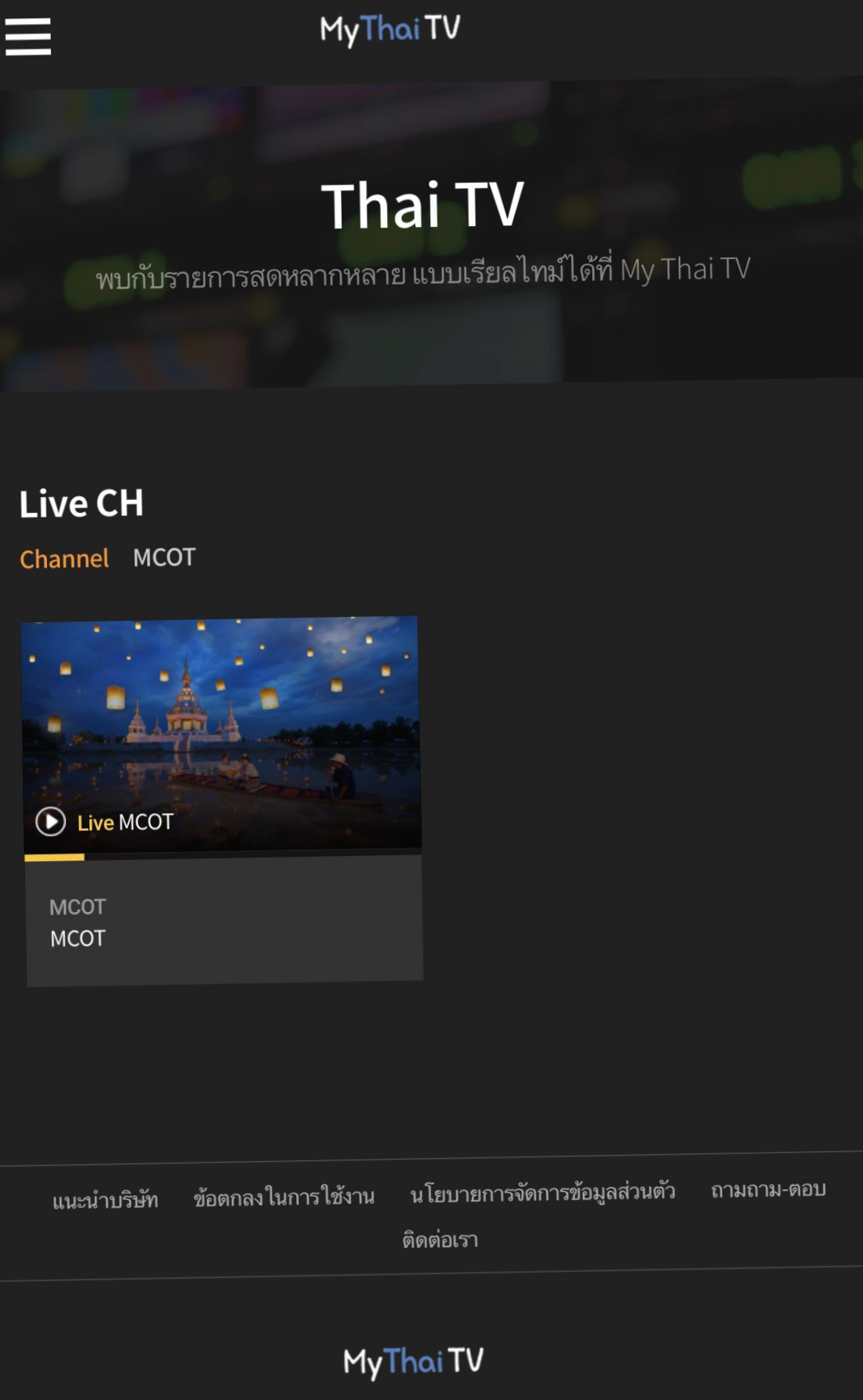 ไทยทีวีเปิดในเกาหลีแล้ว.. ชื่อว่า MY Thai TV ครับ, ตอนนี้ ช่อง MOCT LIVE สามารถดูได้แล้ว... บริษัท myhometv.net (SLC NET) บอกว่าจะบริการเพิ่มเติมในอนาคต....ที APP หรือ PC ครับ ถ้าคุณมีทีวี ดีร LIVE OTTv ที่บ้านคุณสามารถรับชมได้ ▶สำหรับข้อมูลเพิ่มเติม