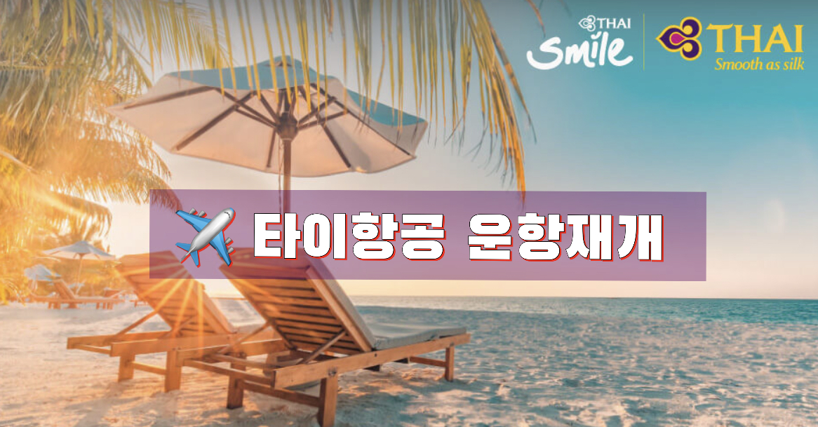 *그리고 추가로 반가운 소식하나 전해드리겠습니다. 타이항공이 조만간 운항을 재개한다고 합니다. 타이항공이 11월 부터 주 2회 운항하기로 했던 계획을 수정하여 우선 월 2회 운항하기로 했으며 12월 부터는 매주 목요일에 운항합니다. <포스팅 보기>