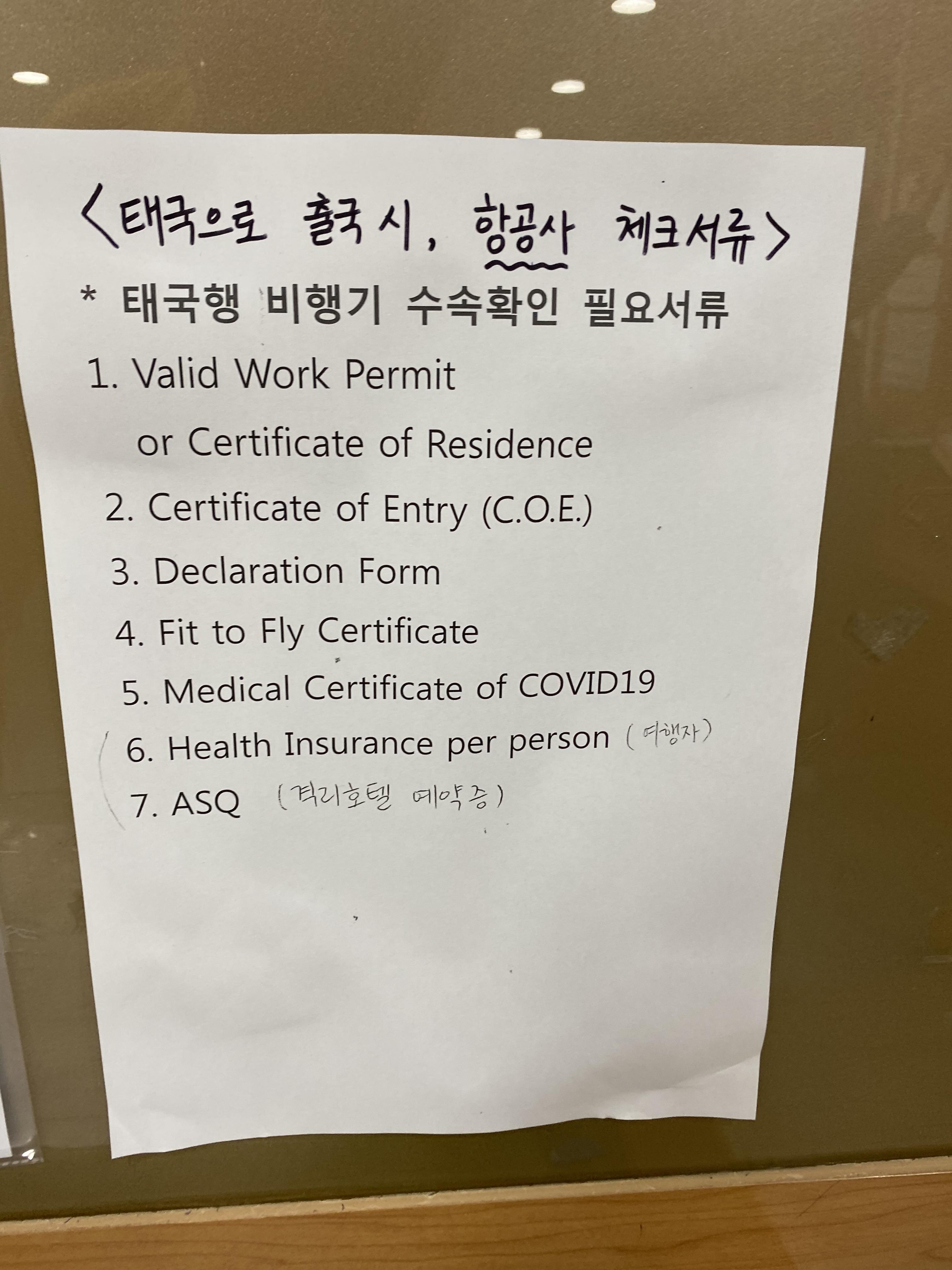 이 서신은 출발 전 항공사와 태국 도착 시