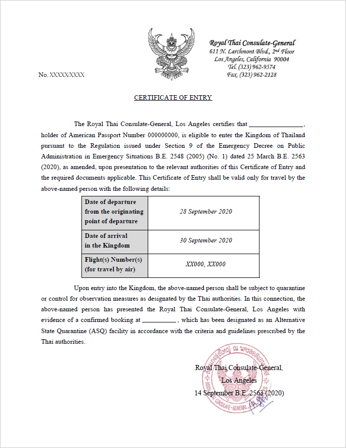 입국 증명서는 여행 예정일에만 유효합니다. COE는 구체적으로 이름, 여권 세부 정보, 출발 및 도착 항공편 날짜, 항공편 번호 및 ASQ 호텔 이름을 명시합니다. 여행을 연기하거나 항공편 세부 정보를 변경해야하는 경우 COE를 새로 신청하여 새 항공편 세부 정보 또는 ASQ 호텔 세부 정보가 포함 된 새 인증서를 받아야합니다.