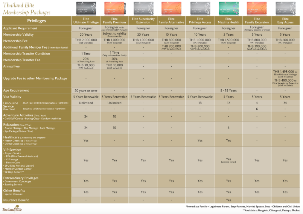 엘리트 프리빌리지 엑세스 (Elite Privilege Access) 가입비용 100만바트에 별도 추가 가족회원 80만바트 또는,