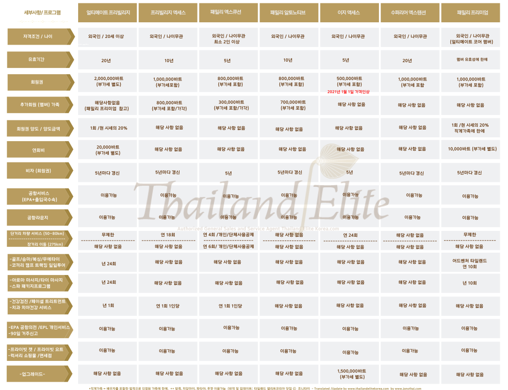엘리트 패밀리 얼터네이티브 (Elite Family Alternative) 가입비용 80만 바트에 추가 가족회원 70만바트 입니다.