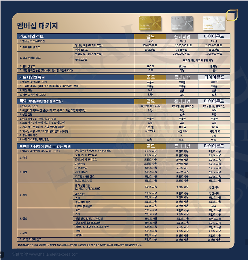 | 2. 기본 회원카드 | 멤버십 요금 (VAT 포함) | 5,000,000 바트 |