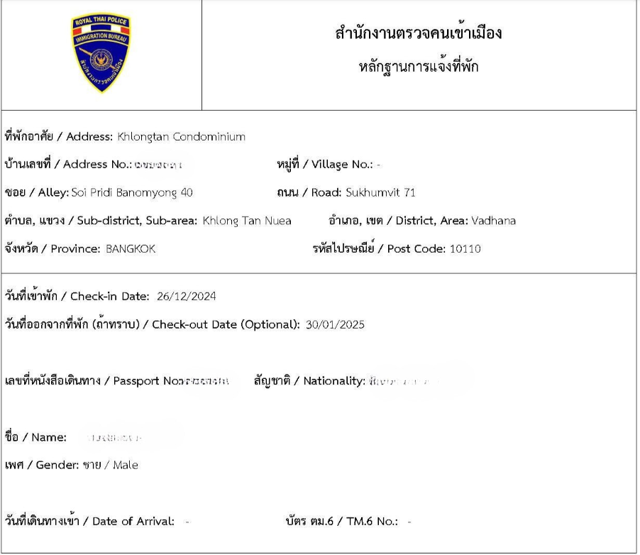 - TM30 양식 (Notification of Residence for Foreigners)